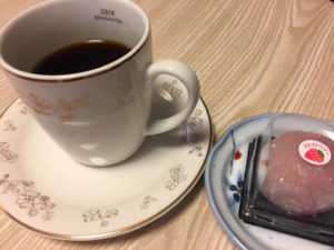 イチゴ大福とコーヒーが最高に美味しく身体と心にしみわたるのでありました。