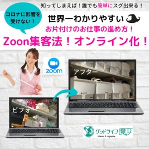 【募集開始!】【タイトル】 コロナの影響受けない! ~知ってしまえば!誰でもスグ出来る!~ 世界一わかりやすい お片付けのお仕事の進め方! Zoom集客法!オンライン化!